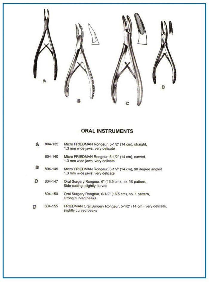 Designed for precision in oral surgeries. Micro FRIEDMAN & Oral Surgery Rongeurs ensure accurate bone trimming. Various shapes for enhanced control.