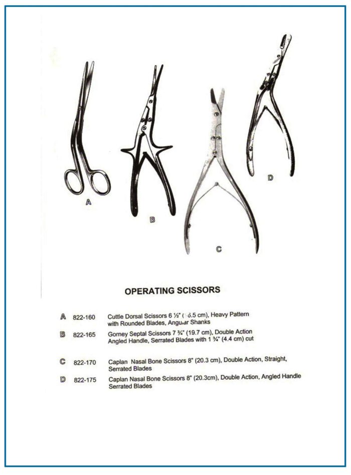 | Caplan Nasal Bone Scissors (Straight) | Nasal Bone Cutting, Rhinoplasty | 8″, Double Action, Straight, Serrated Blades |