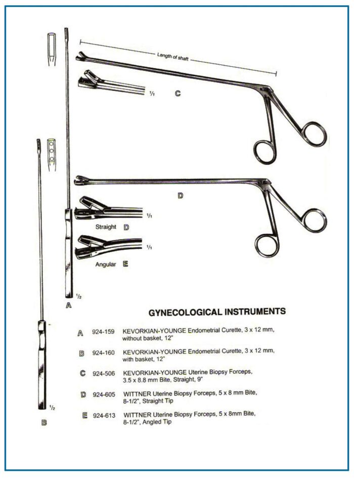 | Kevorkian-Younge Endometrial Curette (with basket) | Tissue collection | Endometrial Curettage | 3 x 12 mm, 12″ |