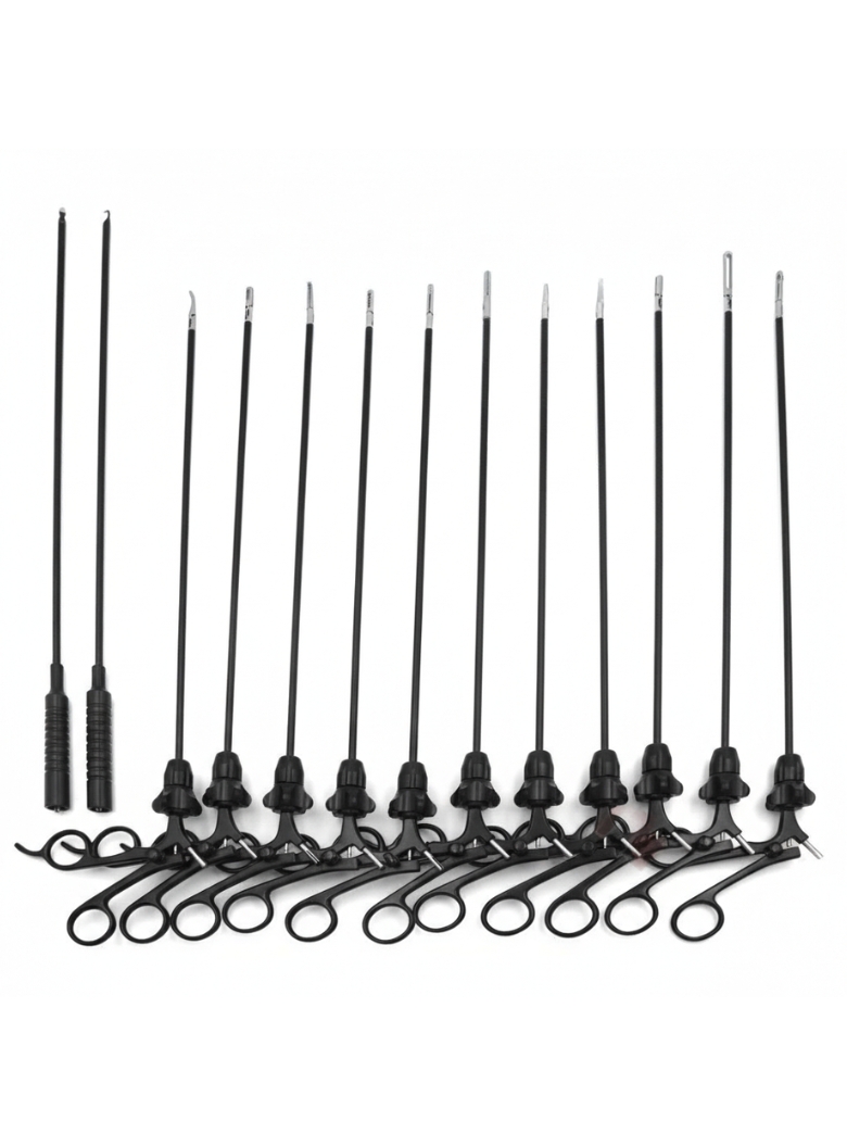 This complete laparoscopic surgery set supports diagnostic and operative procedures by combining grasping, dissecting, cutting, suturing, aspiration, and electrosurgical functions. The coordinated instrument design allows smooth workflow, reduced instrument changes, and efficient procedure completion.