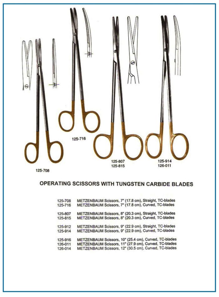 | Metzenbaum Scissors 8″ Straight | Controlled surgical cutting | Straight, TC blades |