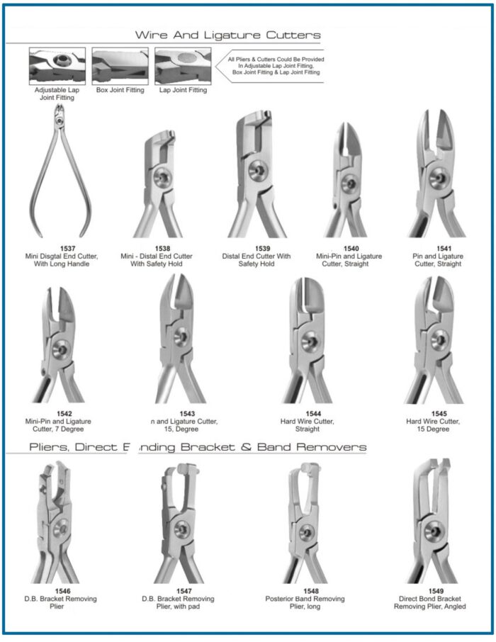 | Distal End Cutter Plier | Cuts distal archwire during orthodontic work | Safety hold design |