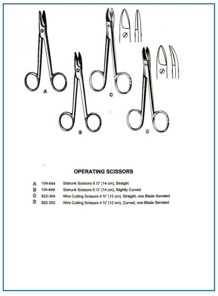 | Wire Cutting Scissors 4¾” Straight | Cutting surgical wires & sutures in orthopedic surgeries | Straight, serrated blade |