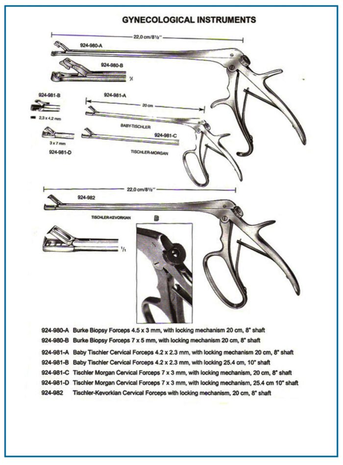 | Tischler-Kevorkian Cervical Forceps | Reliable cervical sampling | Cervical biopsy | 20 cm, locking mechanism |